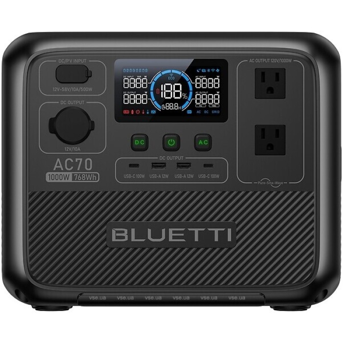 Зарядна станція Bluetti AC70 768 Wh Black - це надійний та потужний пристрій, що забезпечить вас енергією навіть у віддалених походах, подорожах або під час екстрених ситуацій.